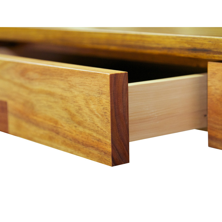 A contemporary solid timber desk, with 4 slimline pencil drawers.